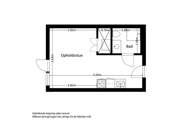 1 rm. apartment of 37 m²