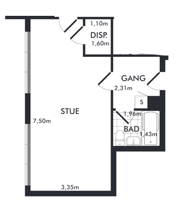 1 rm. apartment of 35 m²
