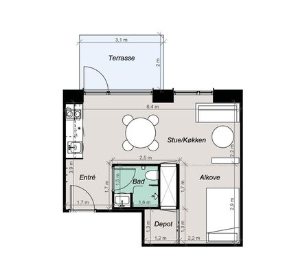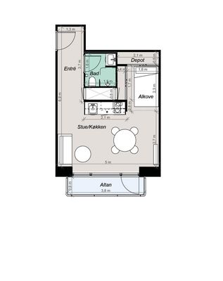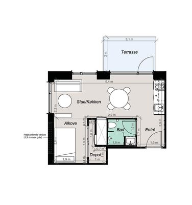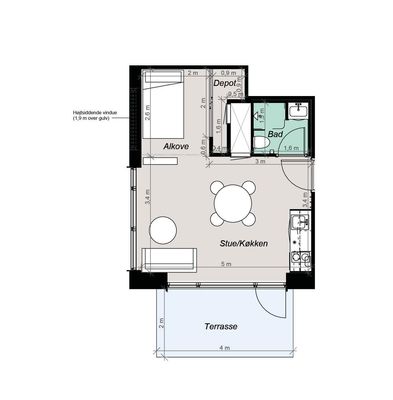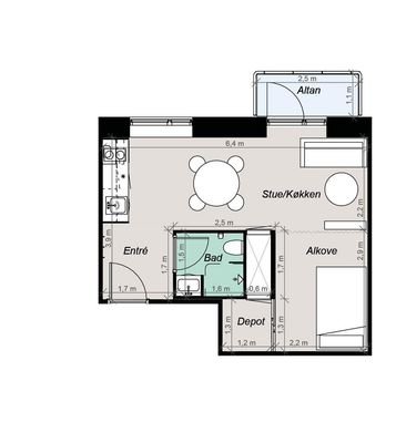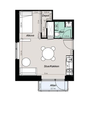 1 rm. apartment of 40 m²