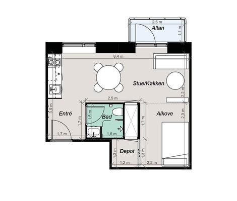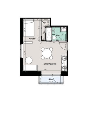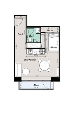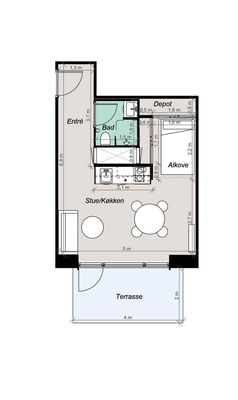 1 rm. apartment of 28 m²