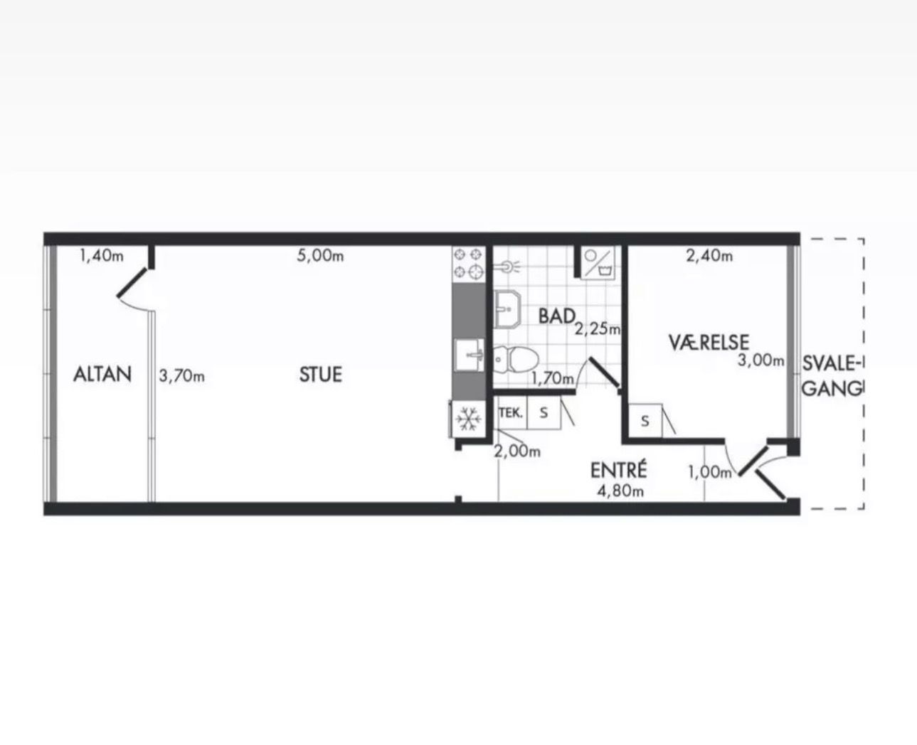 2 rm. apartment of 39 m²