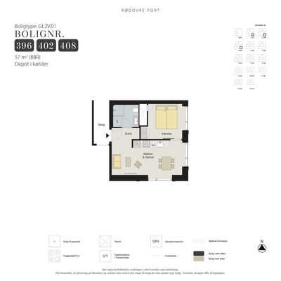 2 rm. apartment of 57 m²