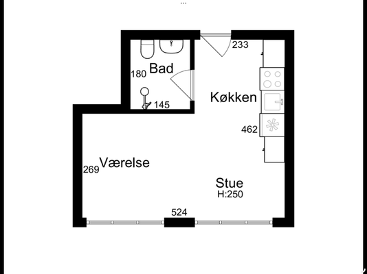 1 rm. apartment of 32 m²