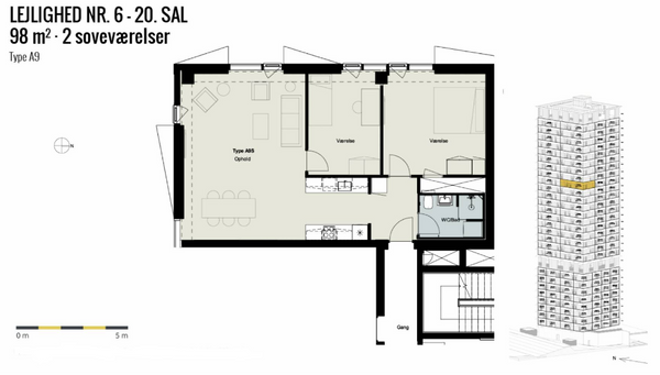3 rm. apartment of 98 m²