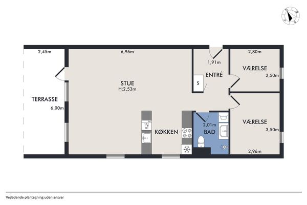 2 rm. apartment of 53 m²