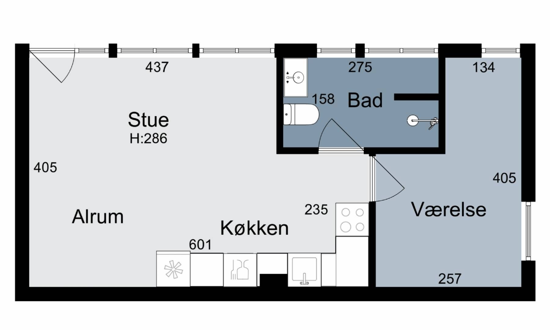 1 rm. apartment of 41 m²