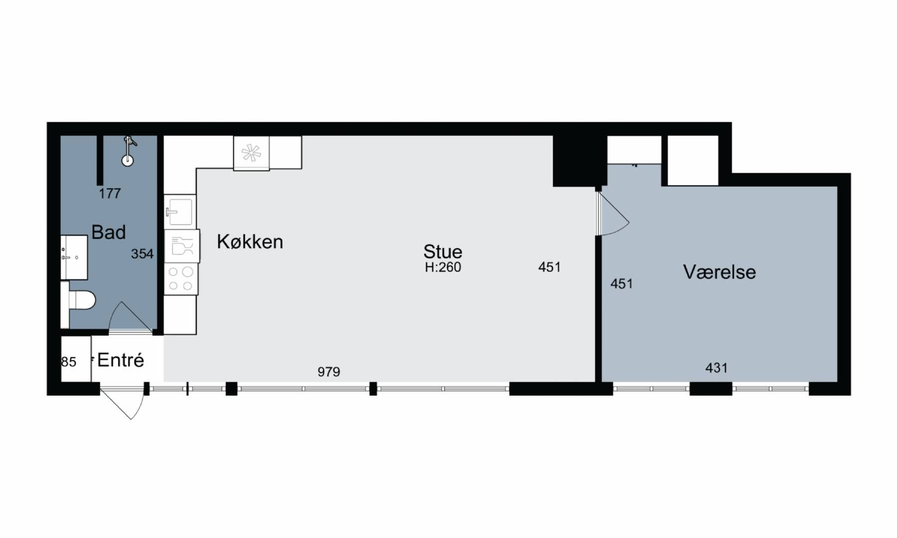 1 rm. apartment of 36 m²