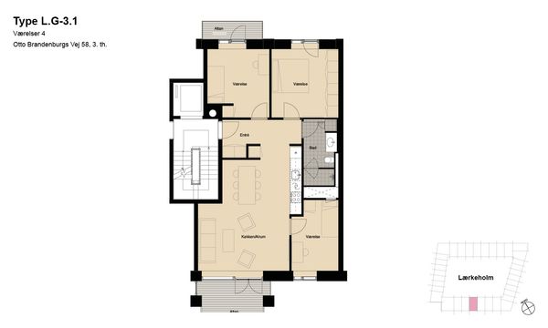 3 rm. apartment of 65 m²