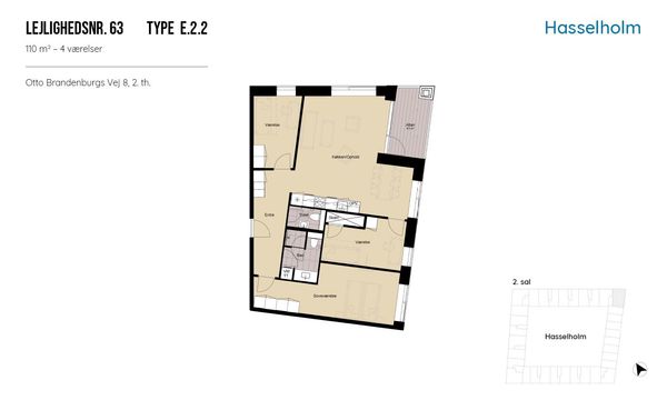 2 rm. apartment of 68 m²