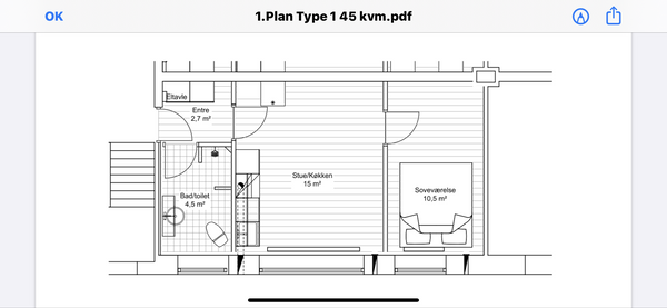 1 rm. apartment of 40 m²