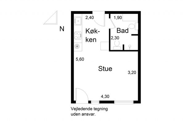 2 rm. apartment of 60 m²