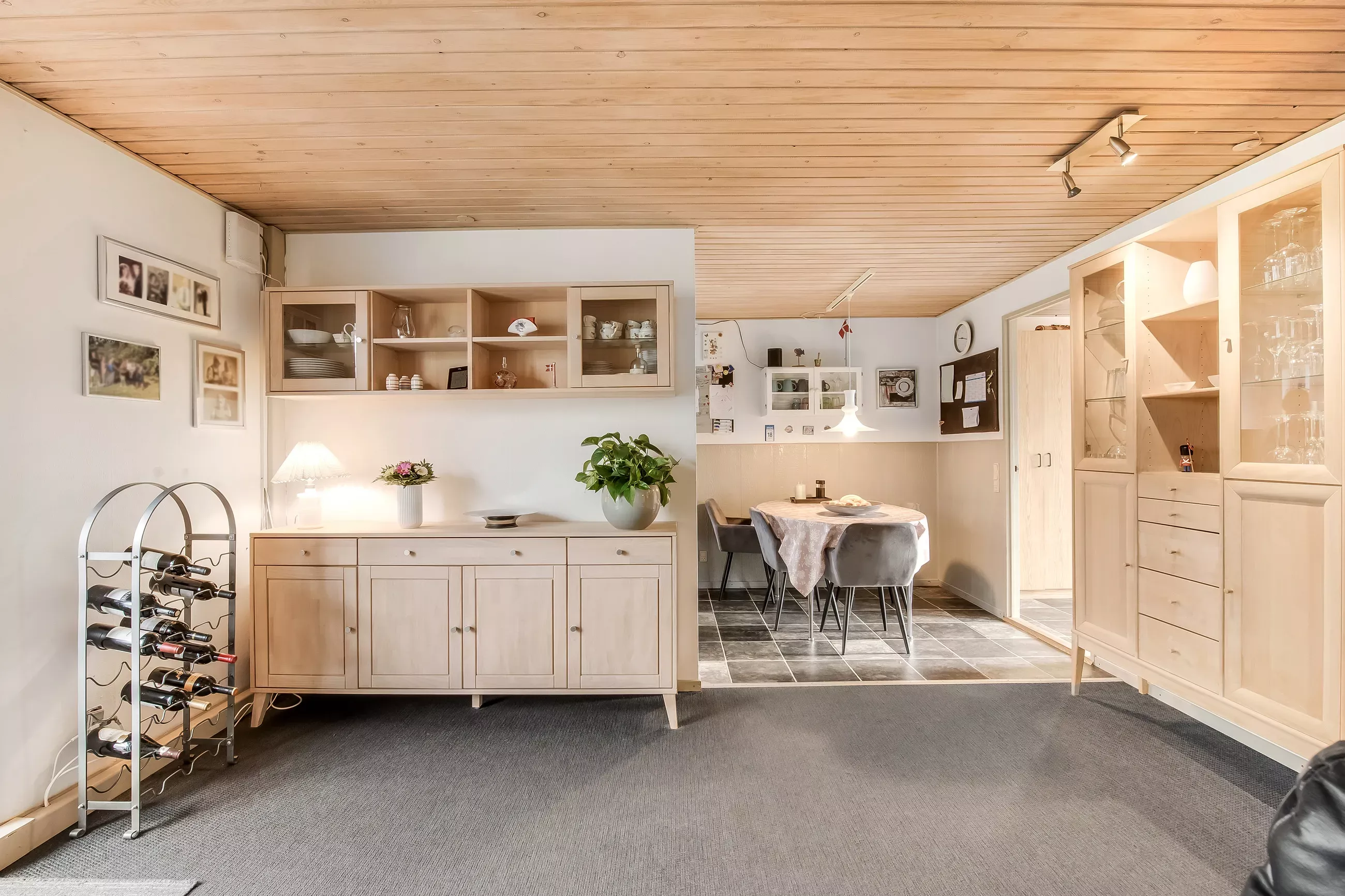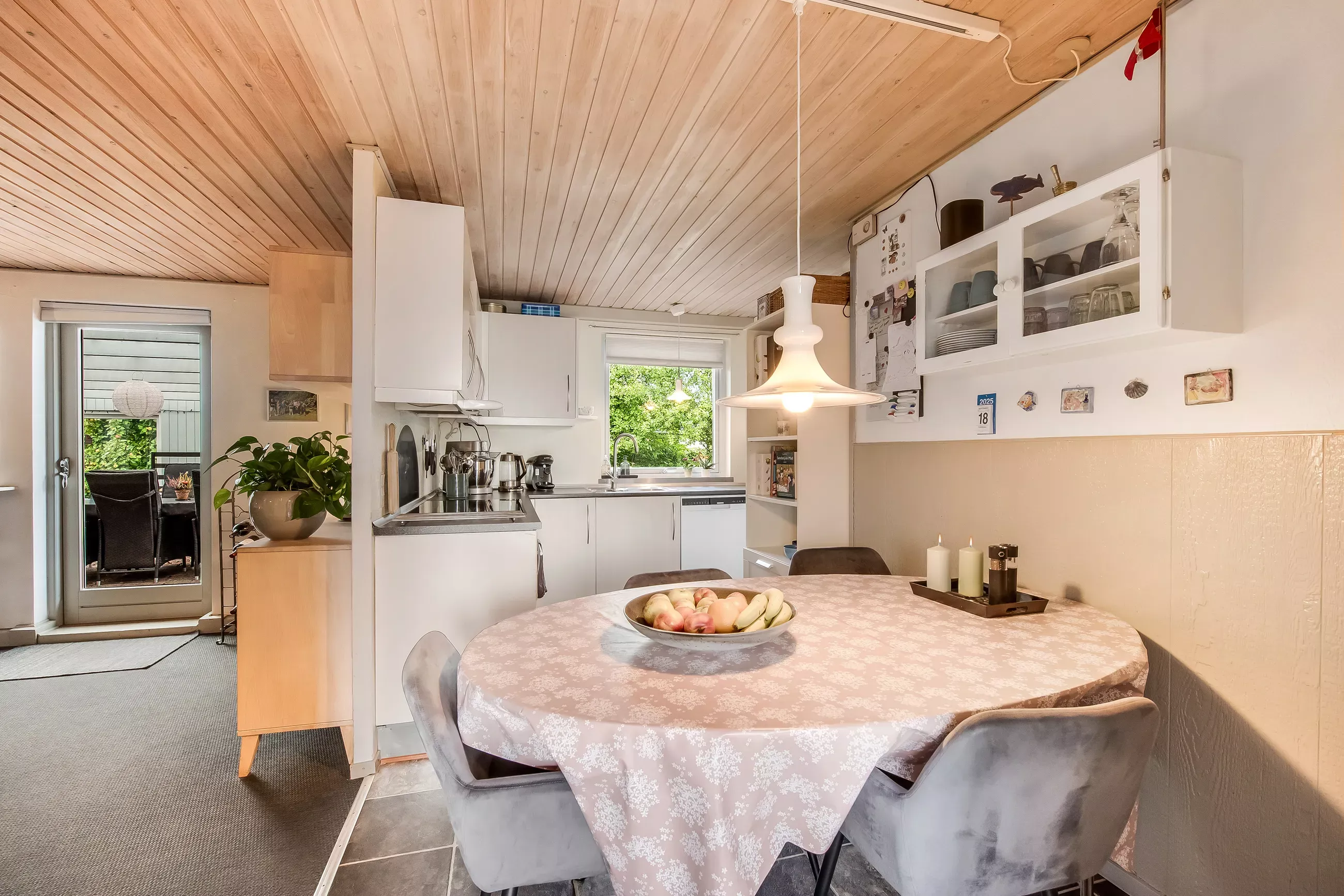 Åben forbindelse fra stue til køkken, og herfra adgang til altanen.