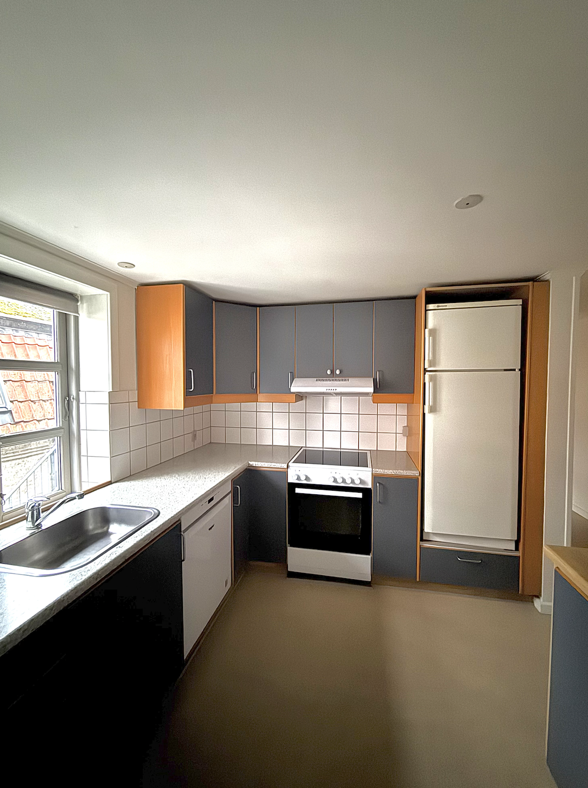 Velkommen til en rummelig lejlighed i en klassisk byejendom med markant, mørk facade og sprossede vinduer. Her får du 116 m2 fordelt på en funktionel planløsning med entré/fordelergang, stor stue, separat køkken, tre gode værelser og et badeværelse med vindue. Materialevalget er lyst og indbydende med gennemgående trægulve, hvide vægge og trælofter, der giver en varm, rolig atmosfære og gør det let at indrette personligt. Opholdsstuen er generøs i størrelsen med flere vinduer, der giver et behageligt lysindfald og god plads til både spisebord og sofamiljø. Køkkenet ligger i et selvstændigt rum med lyse fronter, fin bordplads og et praktisk arbejdsflow – her er naturligt lys fra vinduet mod det grønne og selvfølgelig opvaskemaskine. Badeværelset er funktionelt indrettet med separat bruseniche, god skabsplads ved vasken, vindue for naturlig ventilation samt egen vaskesøjle med vaskemaskine og tørretumbler. Lejligheden rummer tre regulære, lyse værelser, som alle er nemme at møblere med seng, skab og evt. skrivebord. Det gør boligen oplagt til deling, hvor hvert værelse er aflukkeligt, og stuen og køkkenet fungerer som gode fællesrum. Planløsningen i ét niveau, de rummelige rum og det rolige materialevalg gør den samtidig seniorvenlig og nem at færdes i til hverdag. Beliggenheden giver en hverdag med kort afstand til indkøb, grønne områder og offentlige transportmuligheder, så både praktikken og de små pauser er lige ved hånden. En velholdt, indflytningsklar bolig med plads til hverdagen – uanset om du er på udkig efter delevenlig indretning, et hjem med ekstra værelser eller en komfortabel base i byen. Lyder det som noget for dig? Kontakt os for en fremvisning.