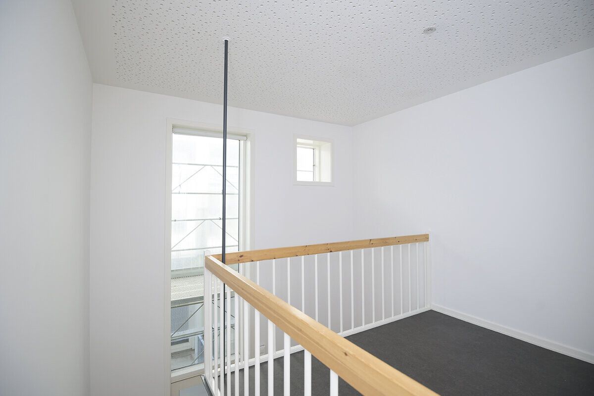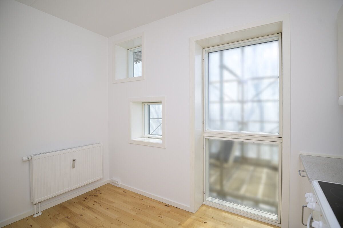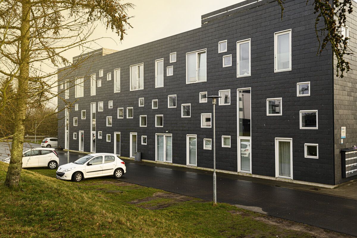 Der hører en fransk altan med til alle studieboligerne, og så har alle beboerne også adgang til en stor lækker fællesterrasse. I stueetagen er der erhverv.
