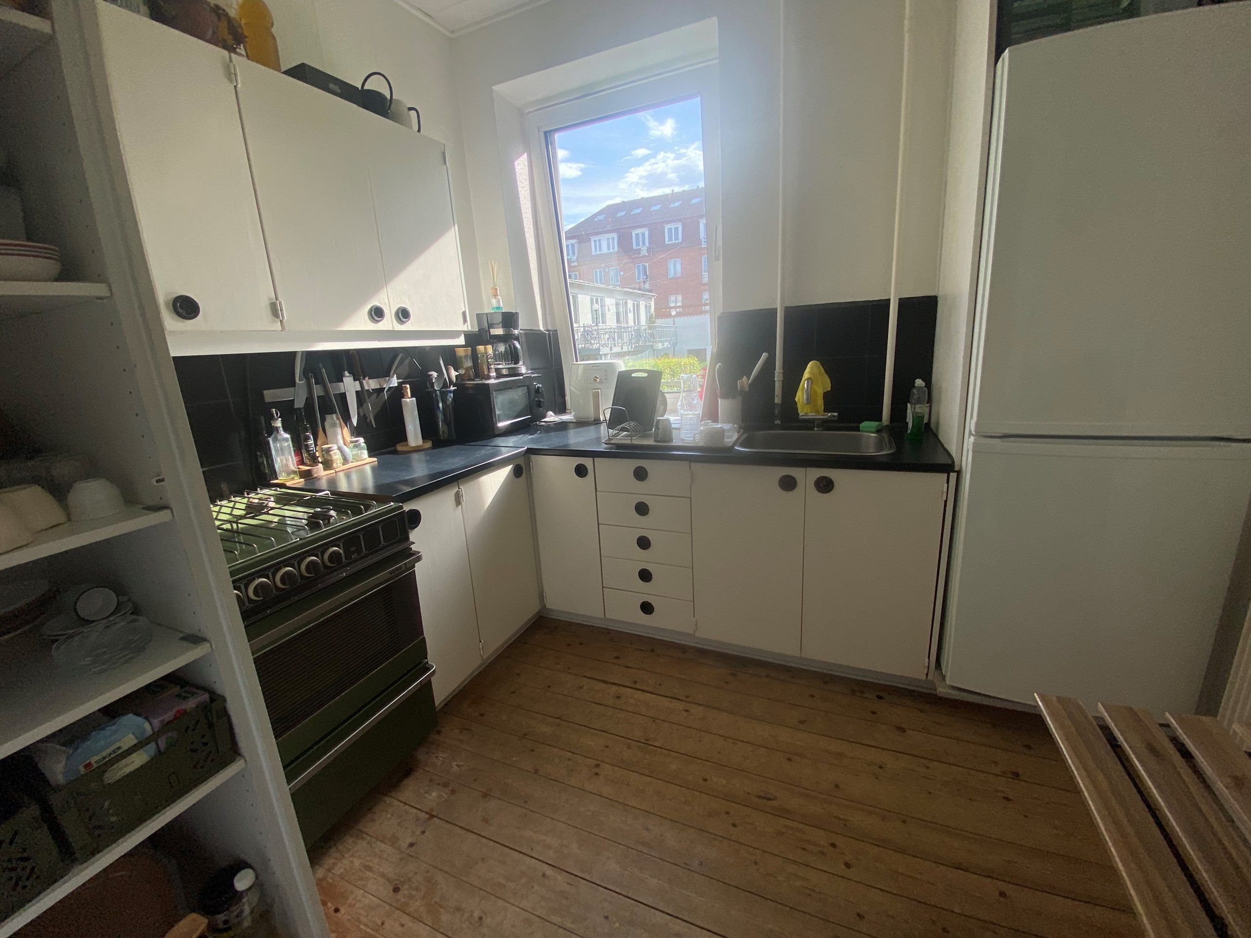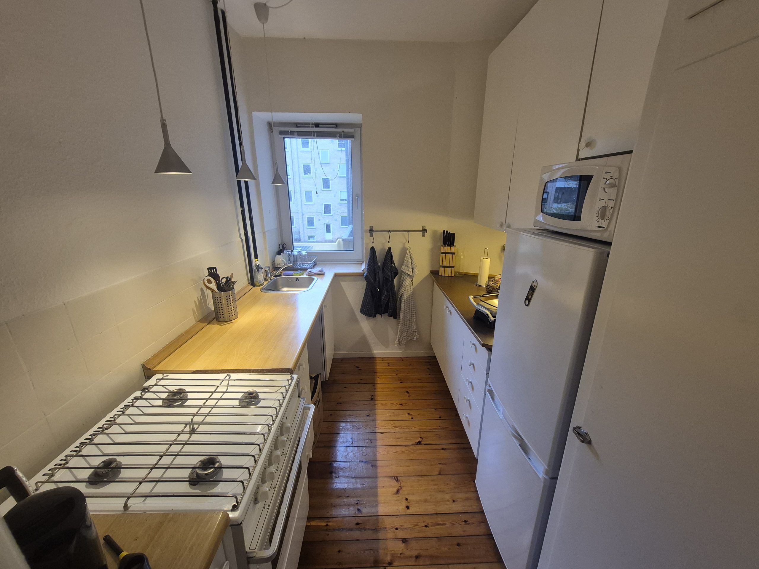 Dejlig 2 vær. lejlighed på 50m2 i Sankt Mortens Gade, 9000 Aalborg. Ældre ejendom der er byfornyet for ca. 20 år siden med nye vinduer, tag m.v. 2 rum, køkken med køl/frys, komfur/emhætte.