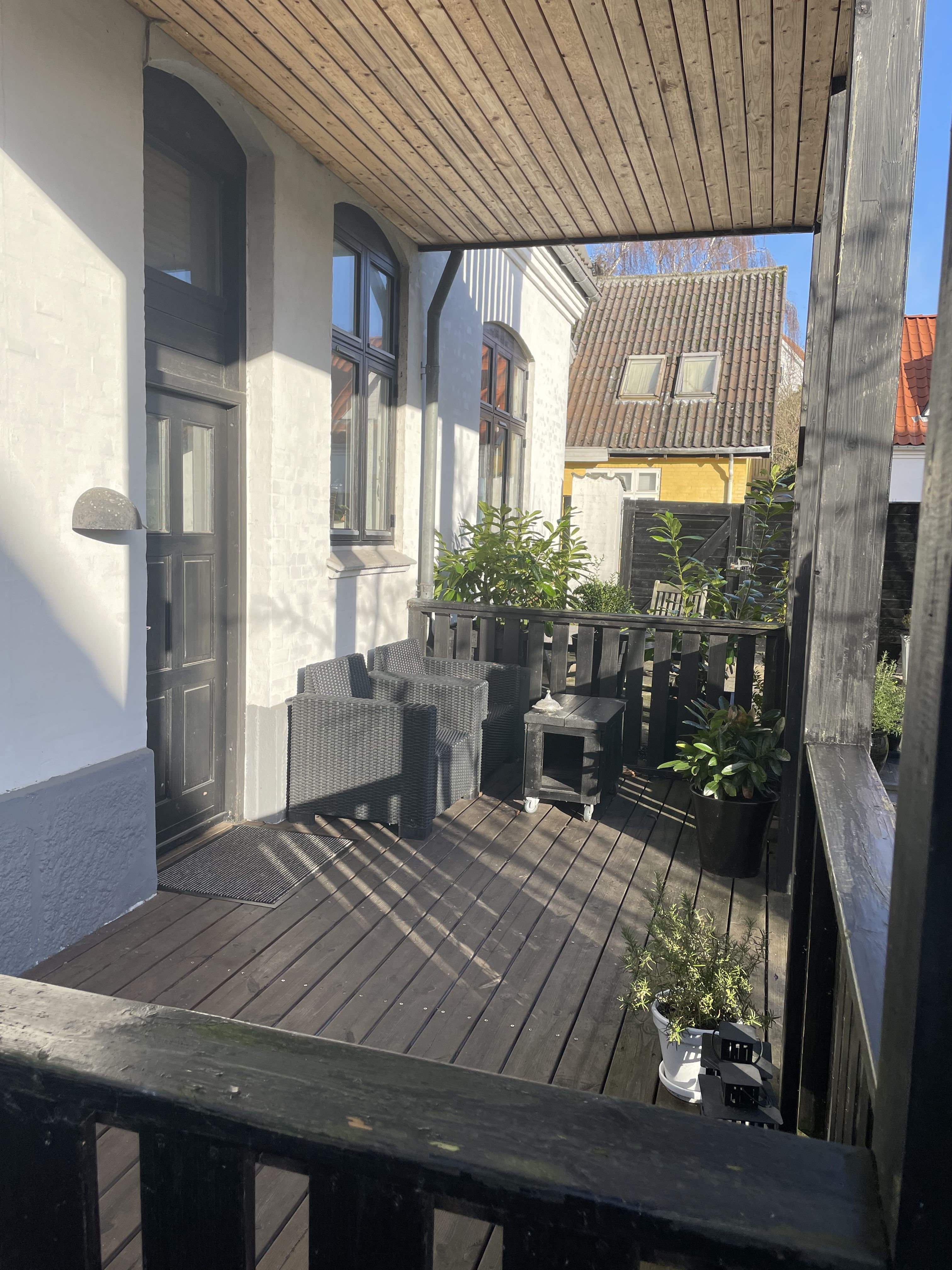 Toilet på bagtrappe der deles med rolig lejer ved siden af.