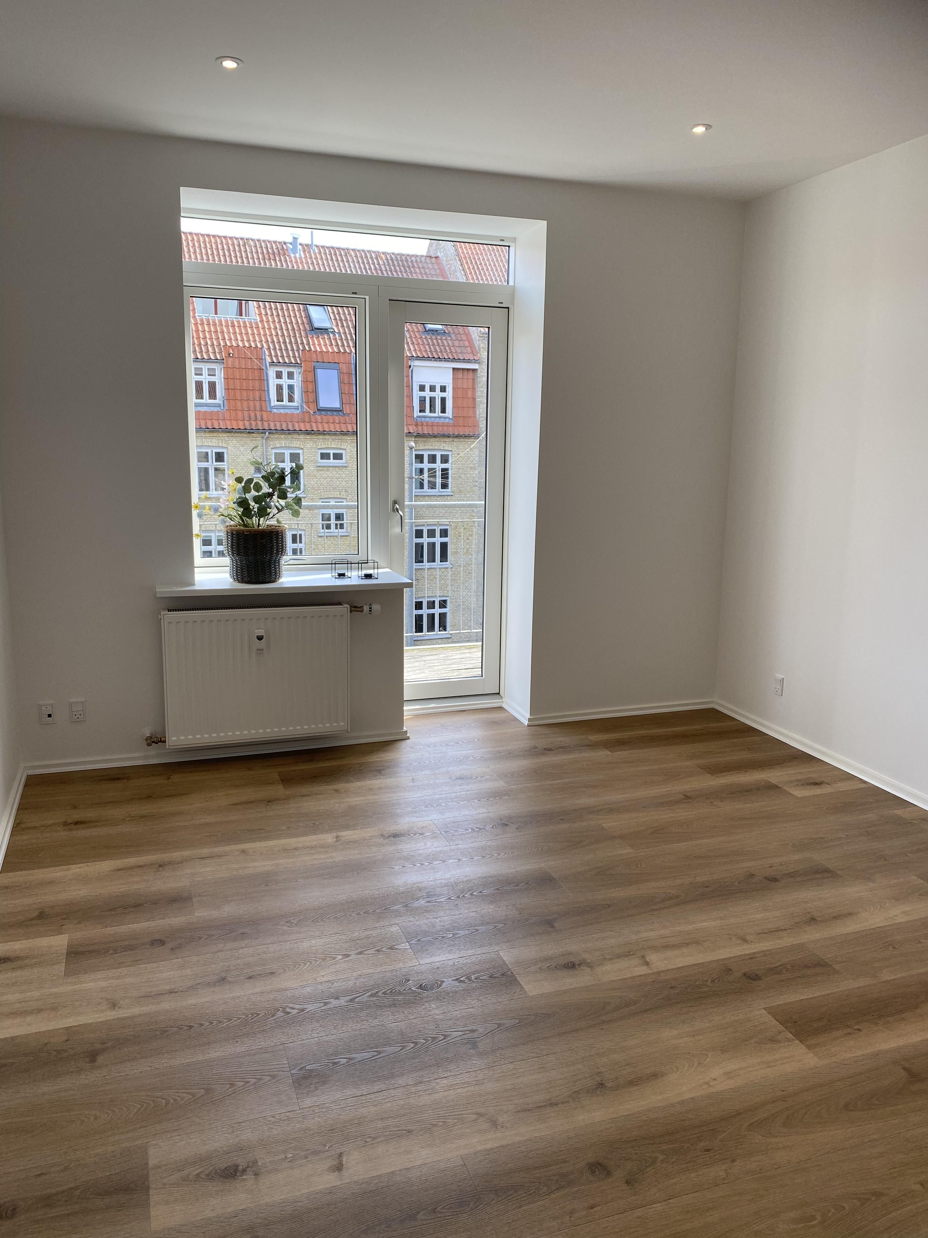 Åhuset er 160 moderne og attraktive lejligheder, der er nyopført i november 2022, på Godsbanen i Aalborg. Alle 160 lejligheder er udlejet, men denne er blevet ledig og med overtagelse 01.06.2026. Fakta for denne bolig: - 2-værelses lejlighed - 53 kvm: 4. sal - Arkitekttegnet bolig opført i kvalitetsmaterialer - Vestvendt altan - Fuld hårde hvidevarer-pakke: opvaskemaskine, tørretumbler, vaskemaskine mv. - Lejligheden er udstyret med gardiner - Elevator i opgangen - Eget depotrum i kælderen - Husdyr tilladt (men op til max 5 kg) - Cykelparkering i stueplan - Mulighed for at leje egen parkeringslicens til bil - Stor fælles terrasse og grønne udearealer - Kort afstand til Aalborg Centrum - Offentlig transport lige udenfor døren - Indkøb, fitness m.m. inden for gå-afstand Bemærk: Der opkræves 3x husleje i depositum + 1x husleje i forudbetalt leje + første måneds leje i indflytningspris. Billederne er ikke fra den faktiske lejlighed, men fra en tilsvarende demobolig. Plantegning er fra den pågældende bolig.