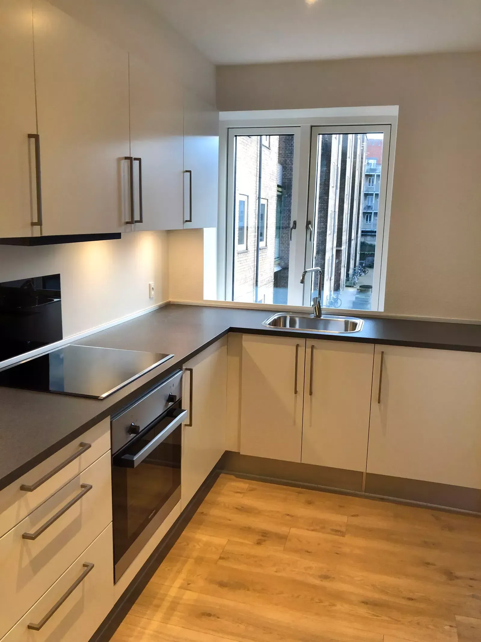 Størstedelen af lejlighederne er indrettet med rå betonvægge og smarte newyorker-glasvægge, der skaber de perfekte rammer for en personlig stil. Lejlighederne har et lyst, nordisk look med gulve i Colorado Oak og hvide vægge, mens vinduesrammerne har fået en markant sort farve for at bryde looket og skabe en interessant kontrast.
