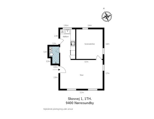 2 rm. apartment of 56 m²