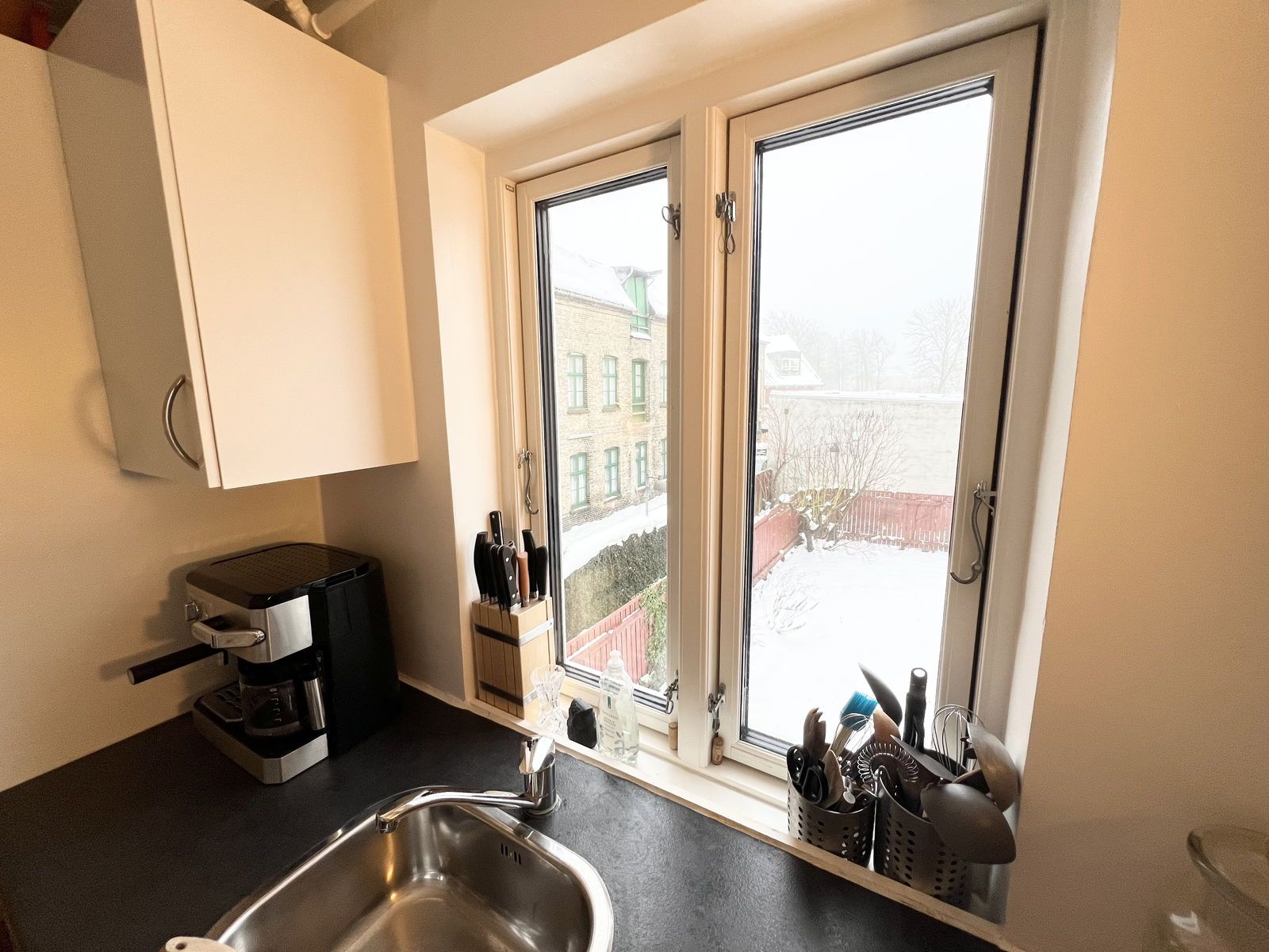 Lejligheden er beliggende i en dejlig ejendom hvor der er fælles gårdanlæg med dejlige hyggekroge, cykelparkering, bålplads og plads til grillhygge m.m. samt kælder med opbevaringsrum.