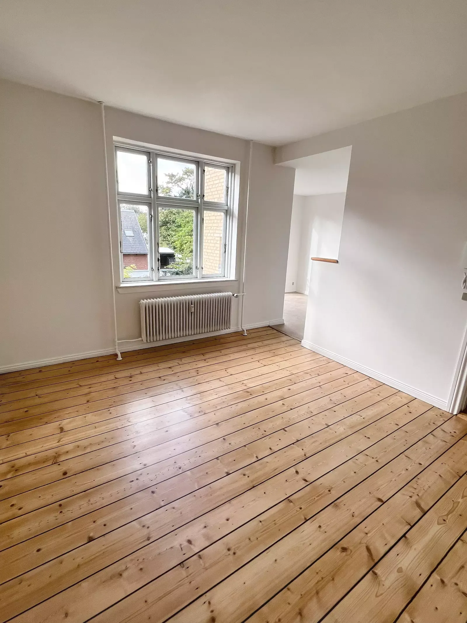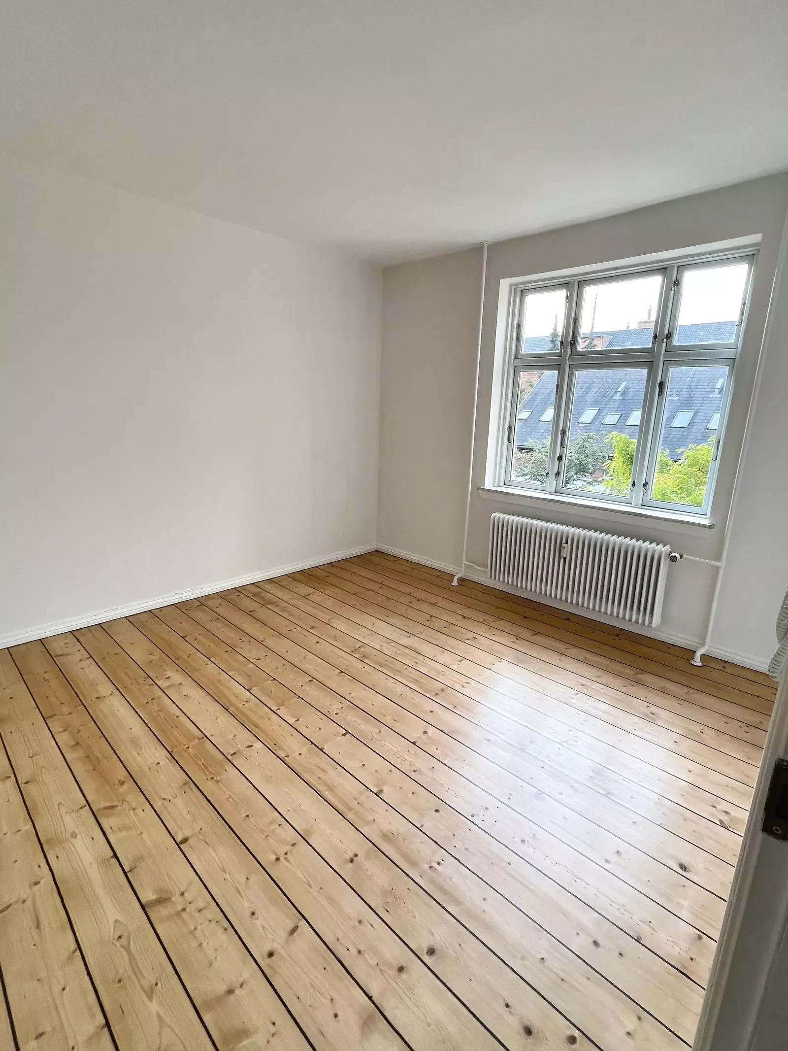 Når man træder ind i lejligheden, kommer man ind i en entré med en knagerække og plads til lige at ankomme og sætte sko osv. Den er også en fordelingsgang, der fører ind i lejlighedens forskellige rum. Der er et lille fint køkken i 70’er stil i en pæn lysebrun farve, der ikke er for meget. Her er der installeret et køleskab med fryser også. Den brune farve fortsætter ude på badeværelset, hvor der er indsat brus, men stadig en god plads. Inde i stuen er der rigtig god plads til en stor sofa og et spisebord i en god størrelse også. Trods de få kvadratmeter er lejlighedens indretning godt udnyttet og gør det nemt, at få plads til alt man kunne tænke sig. Soveværelset er ligeledes af en rigtig god størrelse med masser af plads til både en stor seng og et klædeskab, Der er endda en solrig altan i forbindelse med soveværelset, hvor du har udsigt til ejendommens dejlige gårdhave, hvor der er et stort græsareal med bænke. Der er fællesvaskeri i kælderen og der er overdækket cykelparkering i gårdhaven. OBS! Lille hund max 8 kg tilladt. Ingen katte Boligen kan lejes fra 15. juni 2026. Område: Danmarksgade ligger centralt i Aalborg og fremstår som en livlig bygyde med en blanding af ældre boligbyggeri, små butikker og hverdagsprægede serviceerhverv. Gaden har et klassisk bymiljø med murstensfacader, smalle fortove og et roligt gadeforløb, der giver området en intim og lokal atmosfære. Boligerne består primært af ældre etageejendomme, hvor mange lejligheder er moderniserede, og beboerne spænder fra studerende til familier og seniorer. Handelslivet er præget af mindre specialforretninger, frisører og caféer, som understøtter et nærværende og autentisk gademiljø. Trafikken er begrænset, hvilket gør området trygt for gående og cyklister, og den centrale placering giver nem adgang til både offentlig transport, kulturtilbud og byens øvrige handelsgader. Danmarksgade fungerer som et roligt, men levende bindeled midt i Aalborgs centrum.