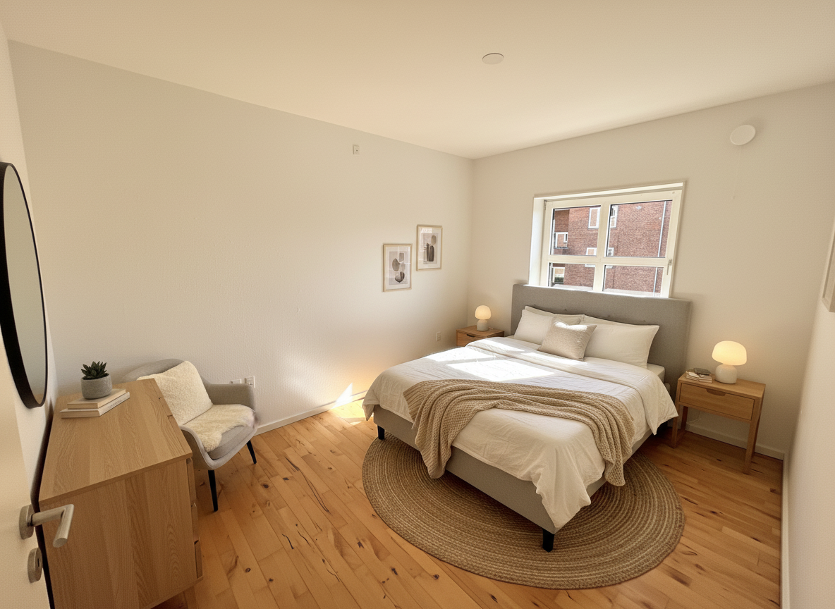 Alle lejligheder er lyse og imødekommende og indrettet i nordisk stil med hvide vægge, hvide lofter og flotte parkettrægulve, så du nemt kan sætte dit eget personlige præg med farver, møbler og design.