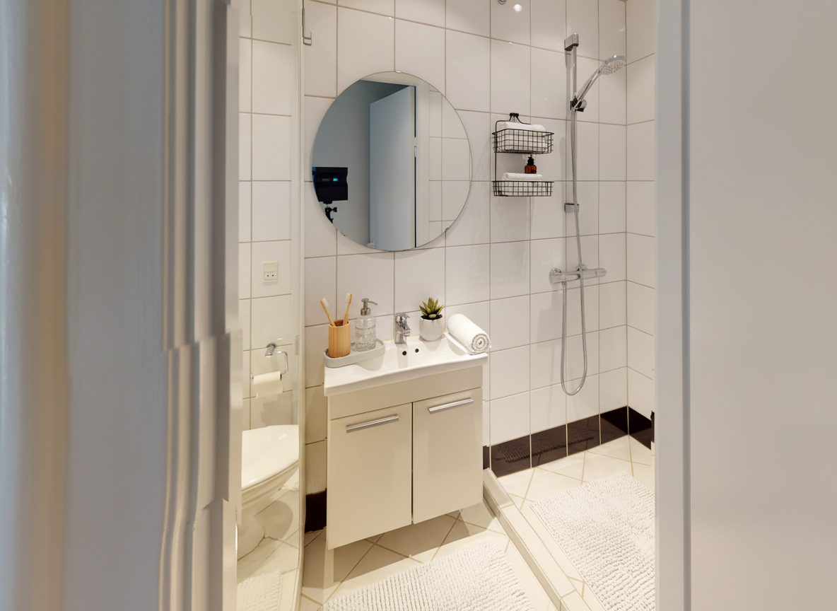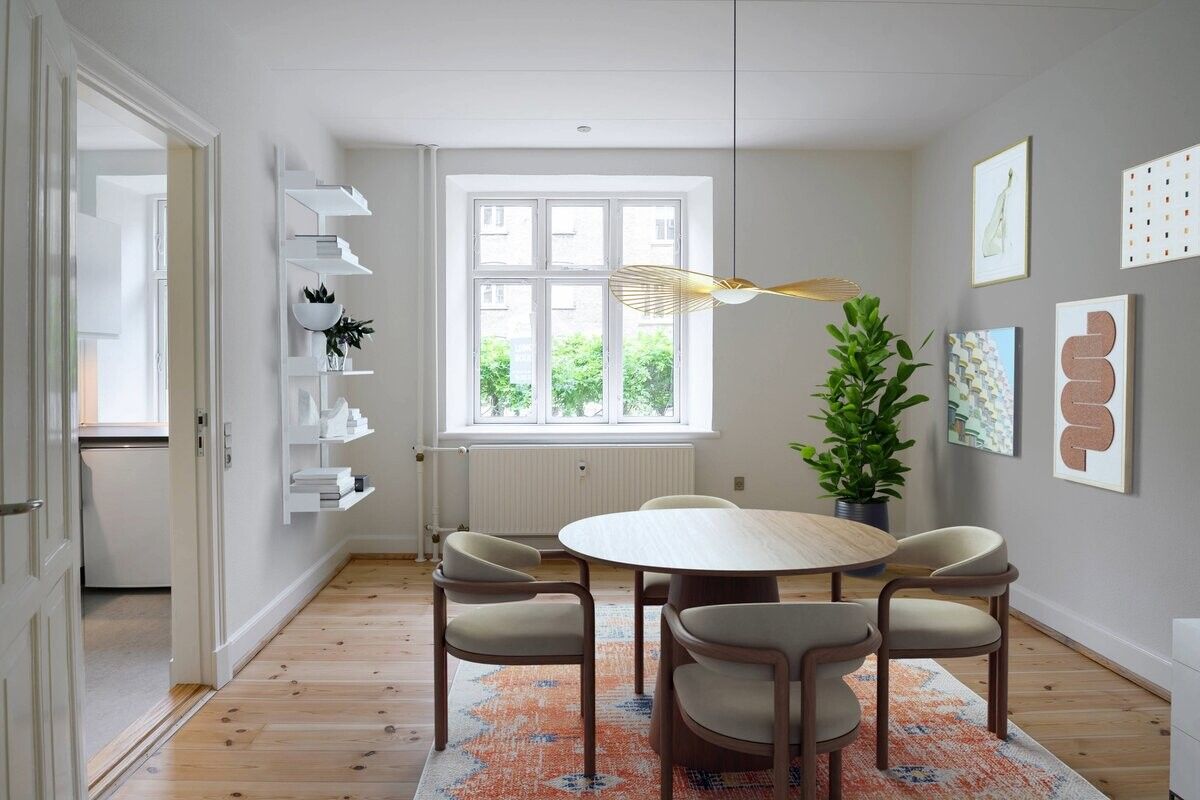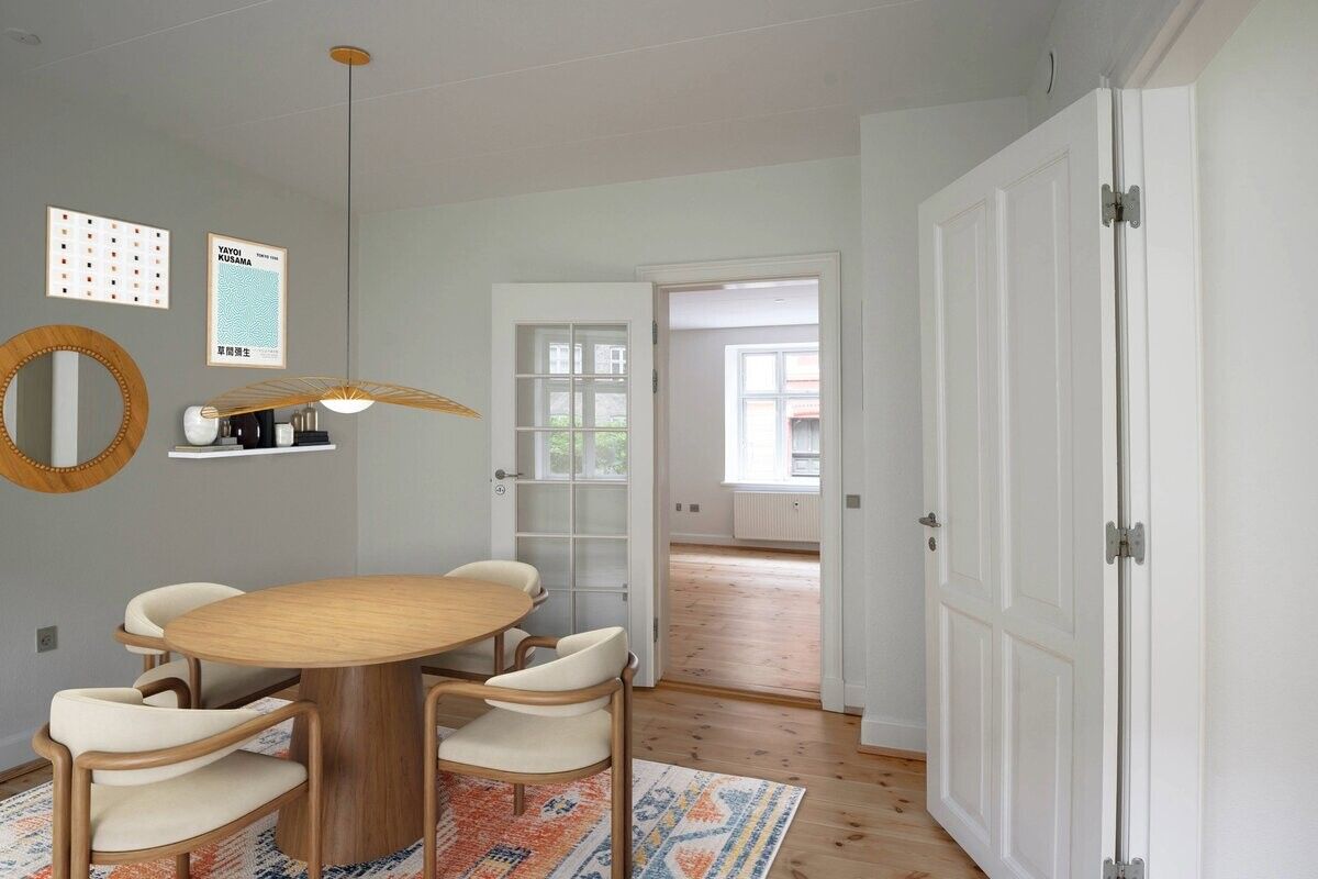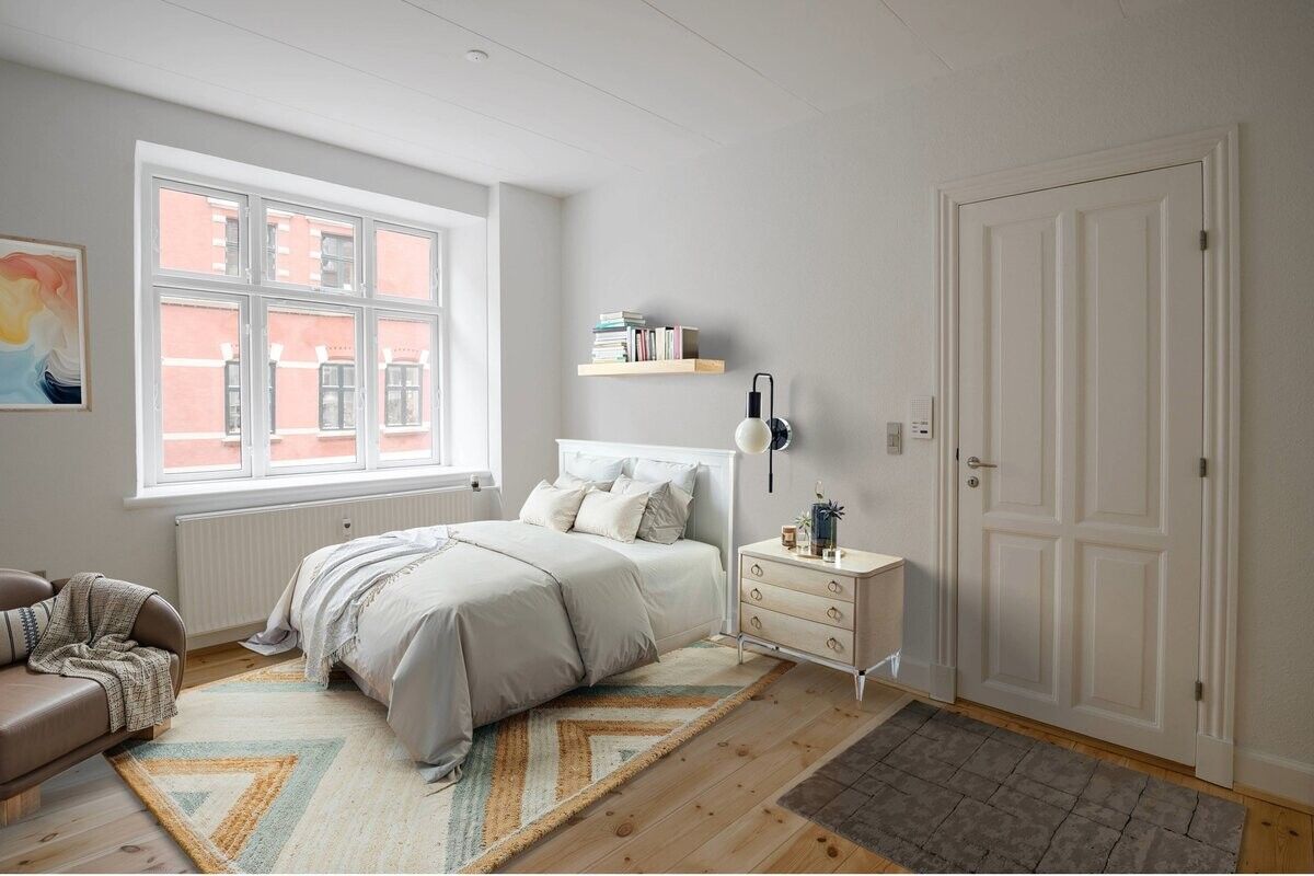 Badeværelset er helt nyt og større end tidligere, herudover er der vaskemaskine og tørretumbler – en stor fordel i en travl hverdag. Planløsningen rummer et godt soveværelse samt en stue, der er nem at indrette med både sofa- og spiseplads. Fra boligen er der to altaner, én mod gaden og én mod den rolige gård, så du kan vælge udsyn efter behov.