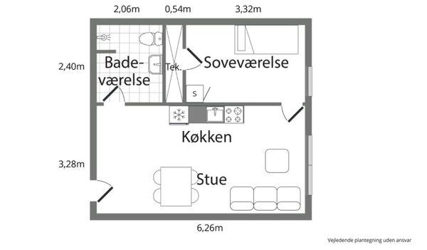 - Er ikke velegnet til beboelse af mere end 2 personer.