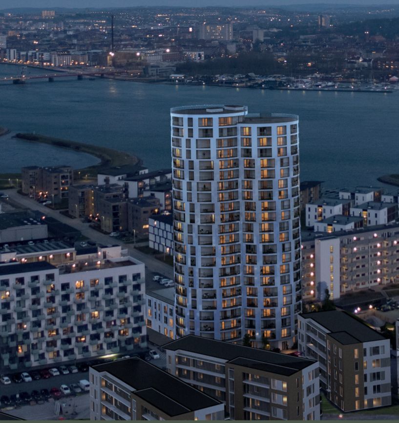 Lejligheden ligger i attraktive omgivelser tæt ved Lindholm Strandpark og Kulturbroen. 2,5 km. til centrum i Aalborg, 100 m til nærbanen, gode busforbindelser tæt ved, 600 m til gode indkøbsmuligheder (Føtex, Lidl, Netto, REMA 1000 og gågaden i Nørresundby).