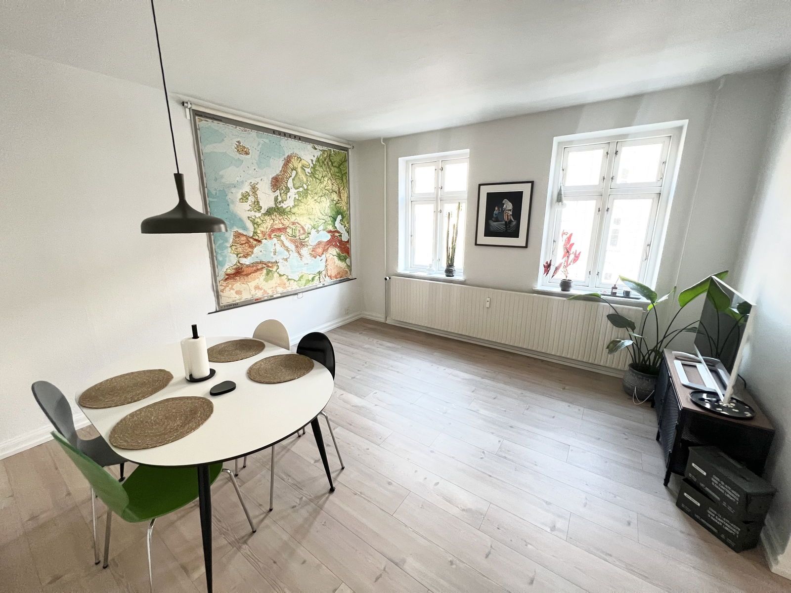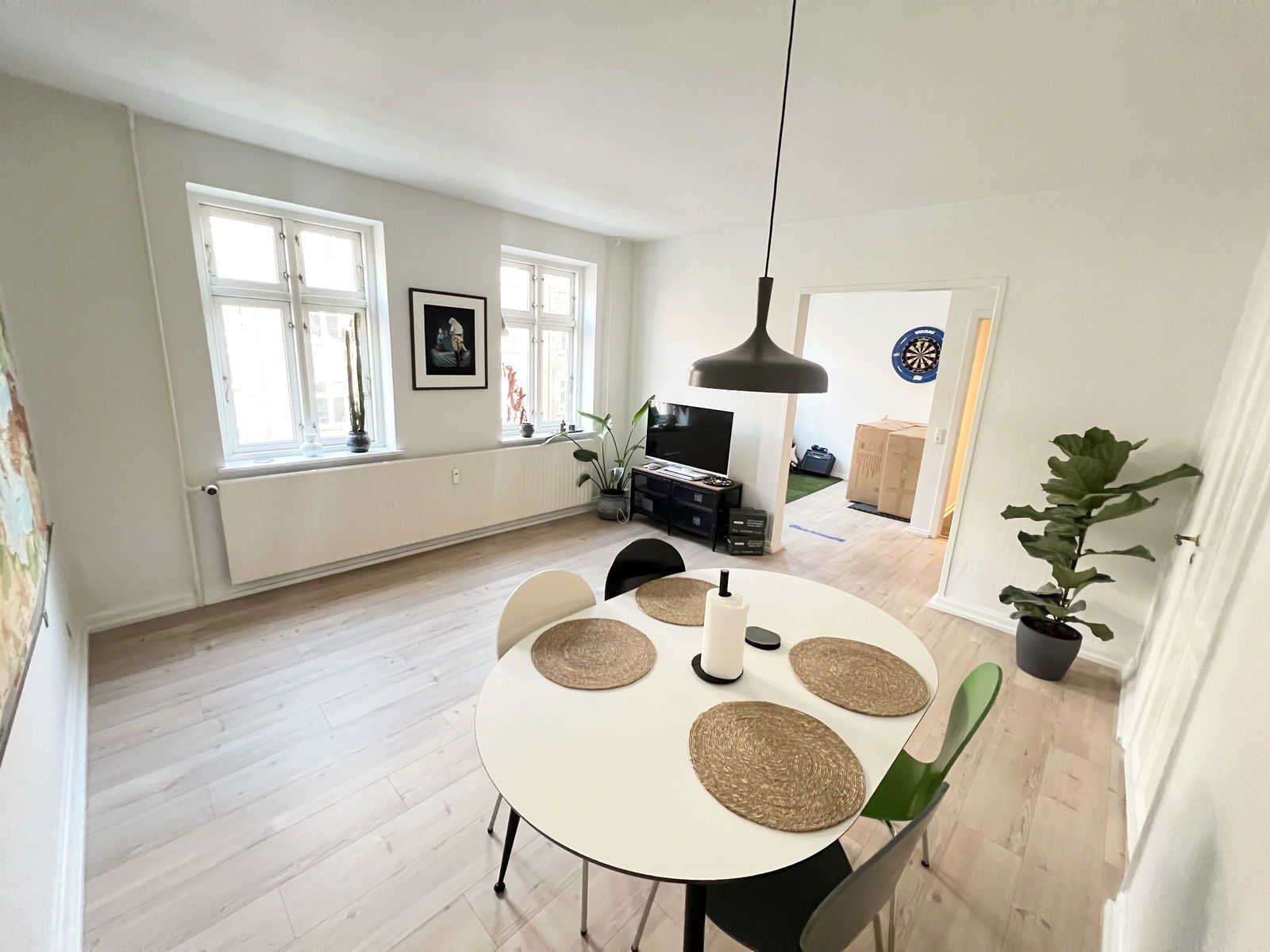 - God og lys stue med plads til både spisebord og sofaarrangement