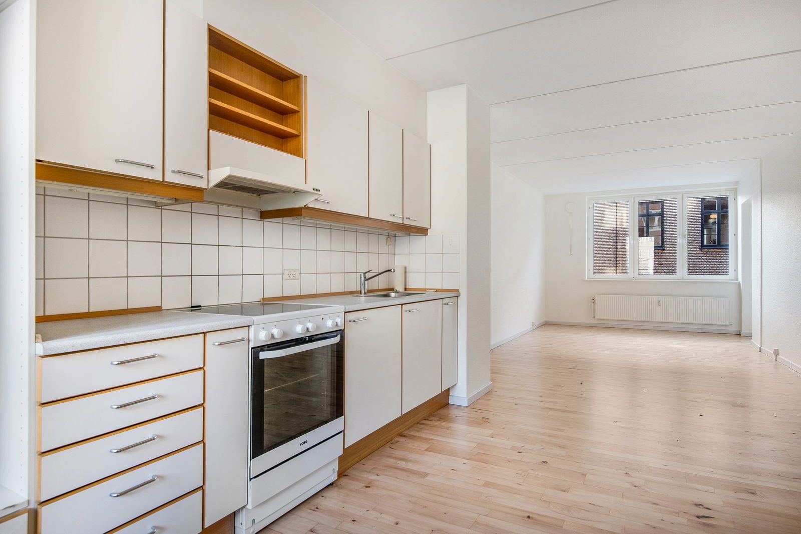 Velkommen til en lys og indbydende 2-værelses lejlighed på 74 m2 i en klassisk ejendom med rødt tegltag og et hyggeligt, grønt gårdmiljø. Boligen er i to plan med en funktionel og hverdagsvenlig indretning – oplagt til par, singlen eller som delelejlighed for to, der ønsker at dele køkken og opholdsrum og have hver sit soveområde. Entréen leder ind i et stilrent, hvidt køkken med træbordplade, flisebagvæg i varme nuancer, god bordplads og indbygningsovn, kogeplade og emhætte. Et vindue over vasken giver et behageligt lysindfald. Ved siden af ligger stuen, hvor de originale plankegulve, de store vinduespartier og trappen til lejlighedens øvre plan skaber en rar og luftig atmosfære med plads til både sofa- og spiseområde. Lejligheden byder på et godt soveværelse på den nederste etage. På øverste plan får du en ekstra etage under taget med hyggelige skråvægge, synlige bjælker og ovenlysvinduer, der trækker masser af dagslys ind. De fleksible kvadratmeter heroppe egner sig perfekt til ekstra soveafsnit, hjemmekontor eller hobbyrum alt efter behov, hvilket gør boligen oplagt som delevenlig løsning. Badeværelset er pænt og funktionelt indrettet med bruseplads, vask med skabsopbevaring og et lyst, enkelt udtryk. Boligen fremstår generelt velholdt med lyse materialer og gode gulvløsninger – plankegulve i opholdszonen og praktiske, lyse gulve i værelserne. Udenfor venter et indbydende, lukket gårdmiljø med borde/bænke, grønne arealer og plads til afslapning i hverdagen. Ejendommen er velpasset med et charmerende gadebillede og klassiske detaljer, der understreger den hyggelige stemning. En rummelig og karakterfuld 2-værelses med ekstra anvendelige m2 i tagetagen og et behageligt gårdmiljø – lige til at flytte ind i. Kontakt os for en fremvisning.
