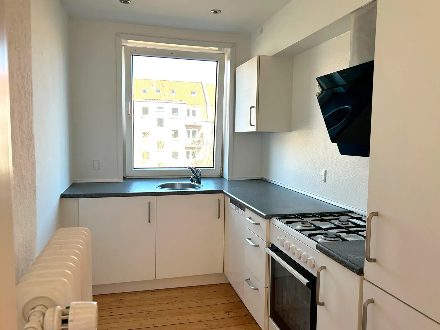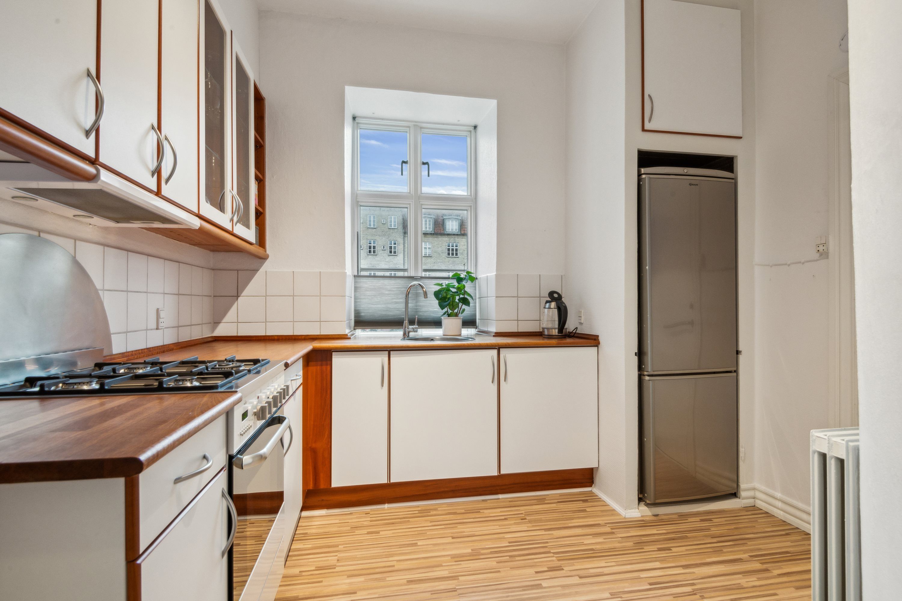 Der er nye parketgulve, GRATIS fælles vaskeri, kælderrum og gratis parkering udenfor døren.