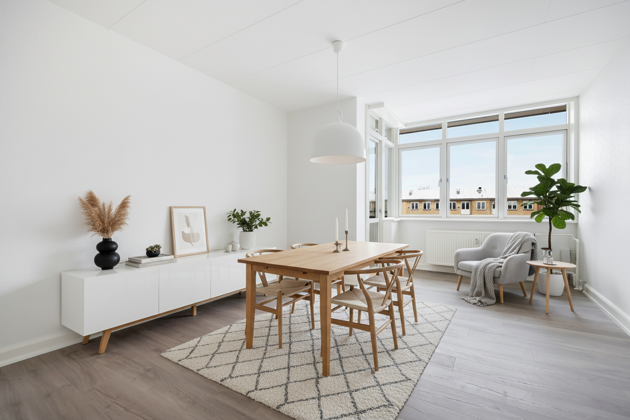 Fra opholdsrummet har du udgang til lejlighedens skønne terrasse, hvor sommeraftenerne kan nydes.