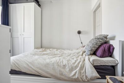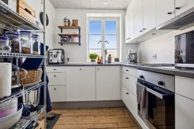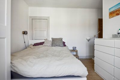 Lejligheden er super rummelig med 92 kvadratmeter fordelt på 1 værelse og en stue-suite med godt lysindfald fra de store vinduespartier. Lejligheden er lys med højt til loftet med smukke detaljer herpå.