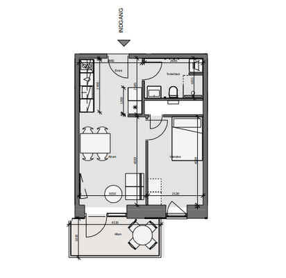 2 rm. apartment of 56 m²