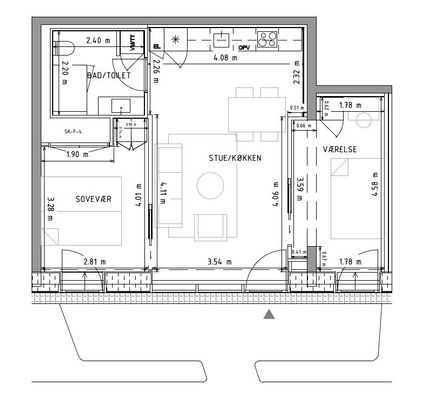 3 rm. apartment of 71 m²