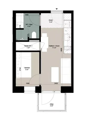 Her får du en veldisponeret 1-værelses lejlighed med funktionelle løsninger og en dejlig altan.