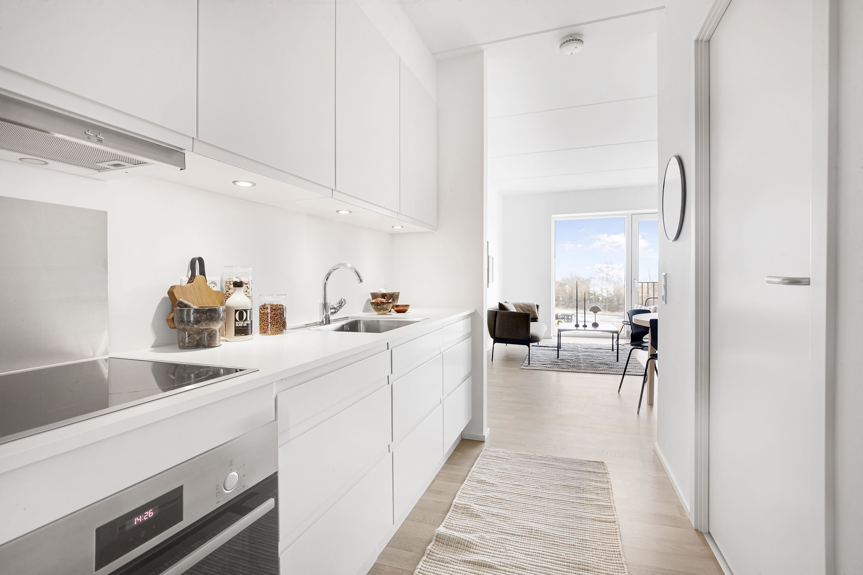 Overalt i lejligheden er der gulvvarme og ved indflytning medfølger alt i hårde hvidevarer.