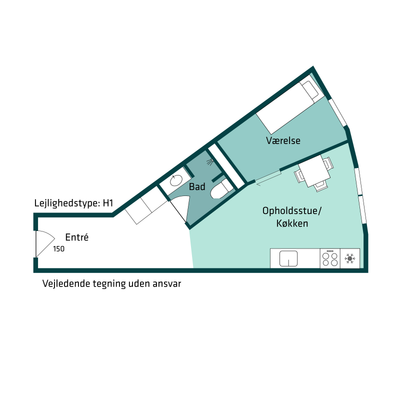 1 rm. apartment of 31 m²