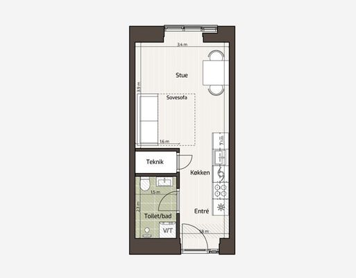 Stor 1-værelses lejlighed med vild udsigt! Boligen har entré med adgang til et funktionelt badeværelse med vaskemaskine/tørretumbler. Køkkenet ligger i forlængelse af entréen og har integrerede hvidevarer. Stuen fungerer som både opholdsrum og soveområde, med plads til sofa/sovesofa og spisebord. Store vinduer giver et lyst og åbent rum. En moderne og praktisk lejlighed med god indretning.