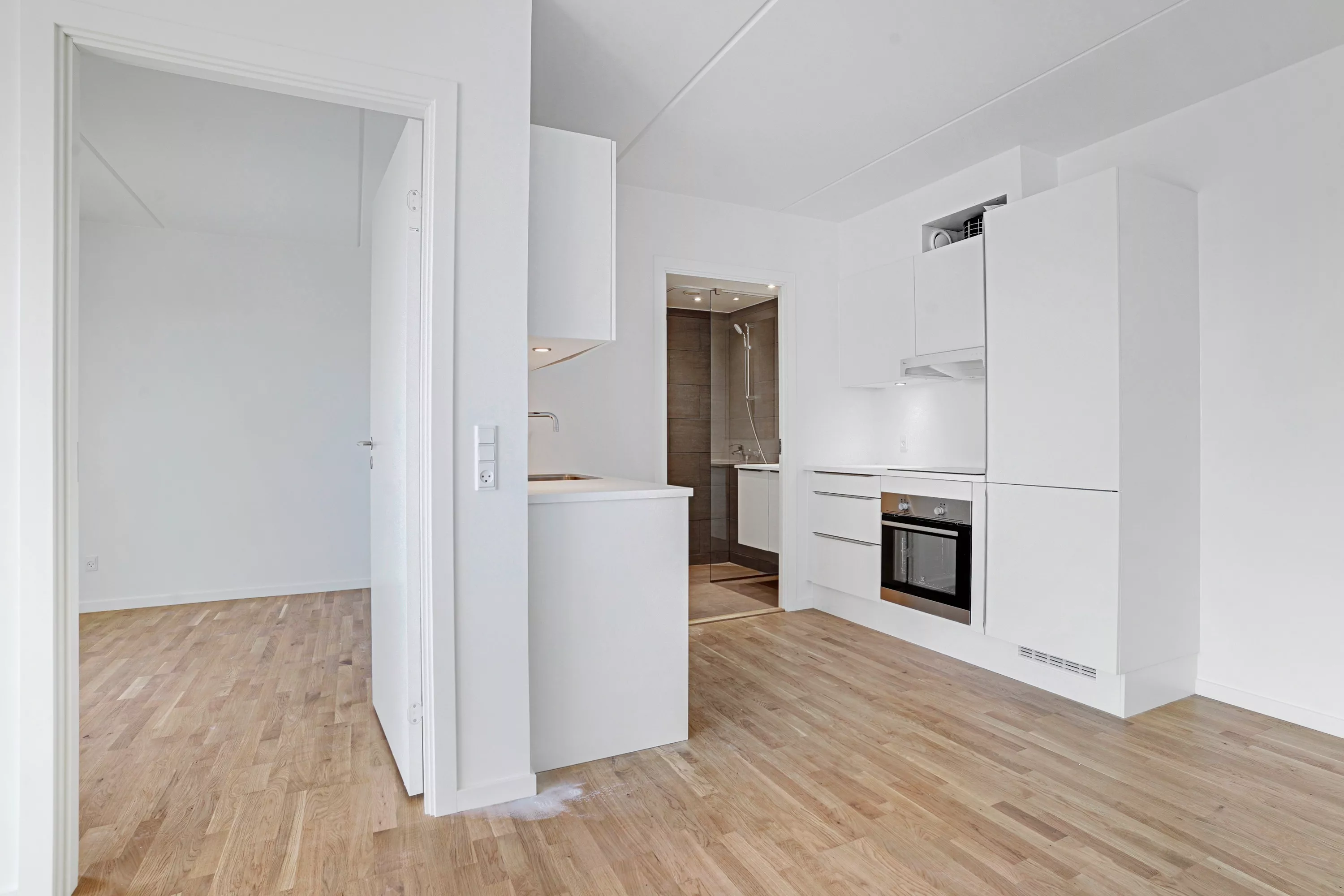 Lejemålet består af køkken med plads til spiseplads samt 2 gode værelser, lækkert badeværelse med combi vaske/tørremaskine. I køkkenet har man en indbygningsovn, emhætte, glaskeramiskkogeplade, køle/fryseskab og opvaskemaskine.