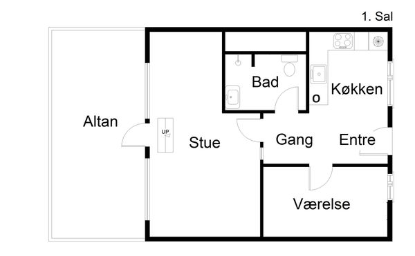 Lejligheden består af værelse samt stue, med udgang til altan( lejligheden er ikke delevenlig).