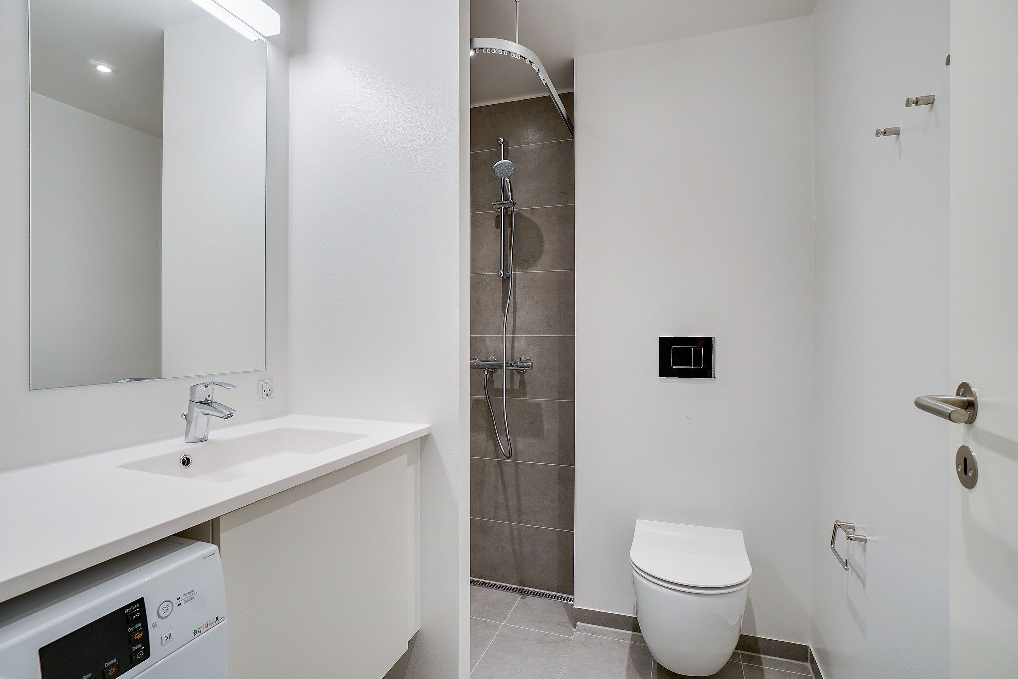 Fint badeværelse med separat bruseniche, gulvvarme.