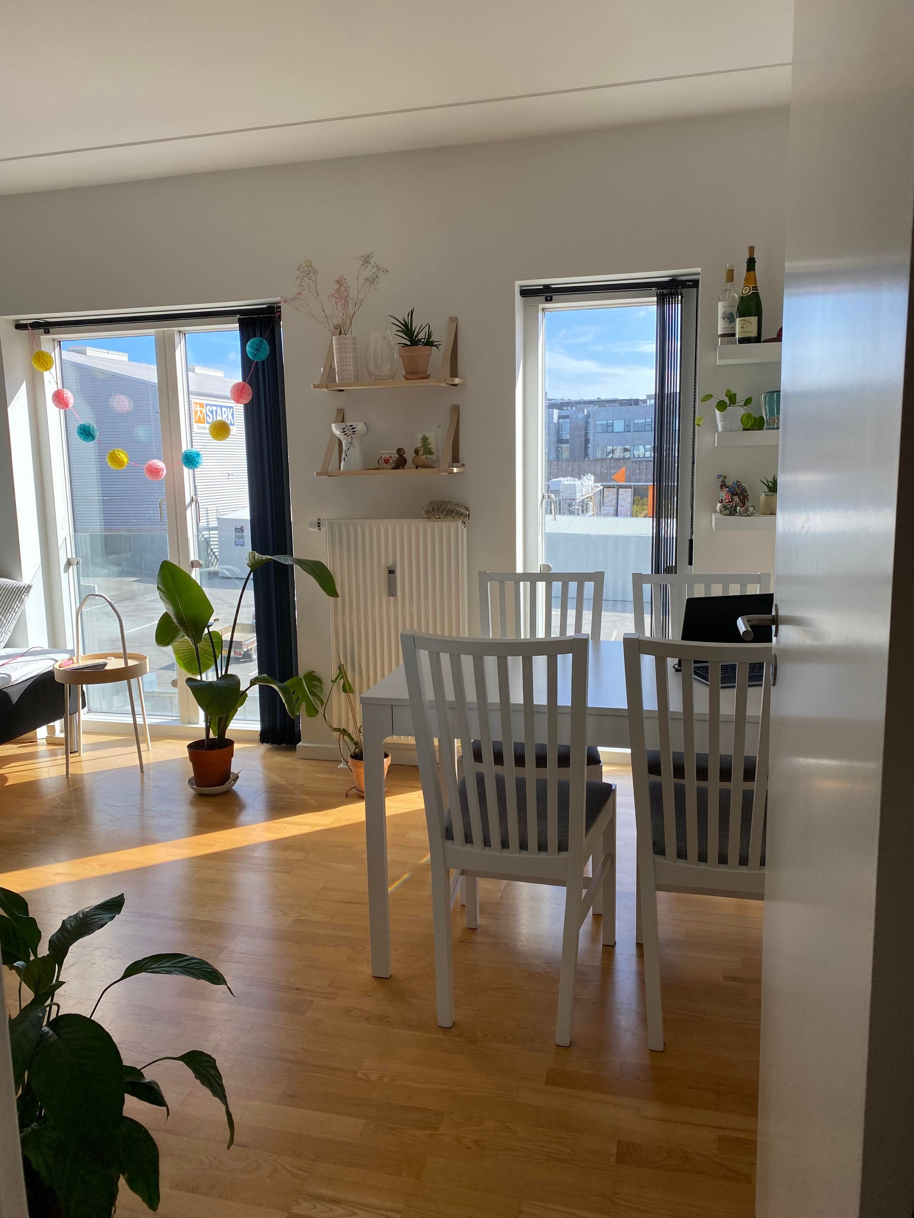 Hyggelig lejlighed på Trøjborg med hems og tagterrasse med udsigt over Århusbugten.