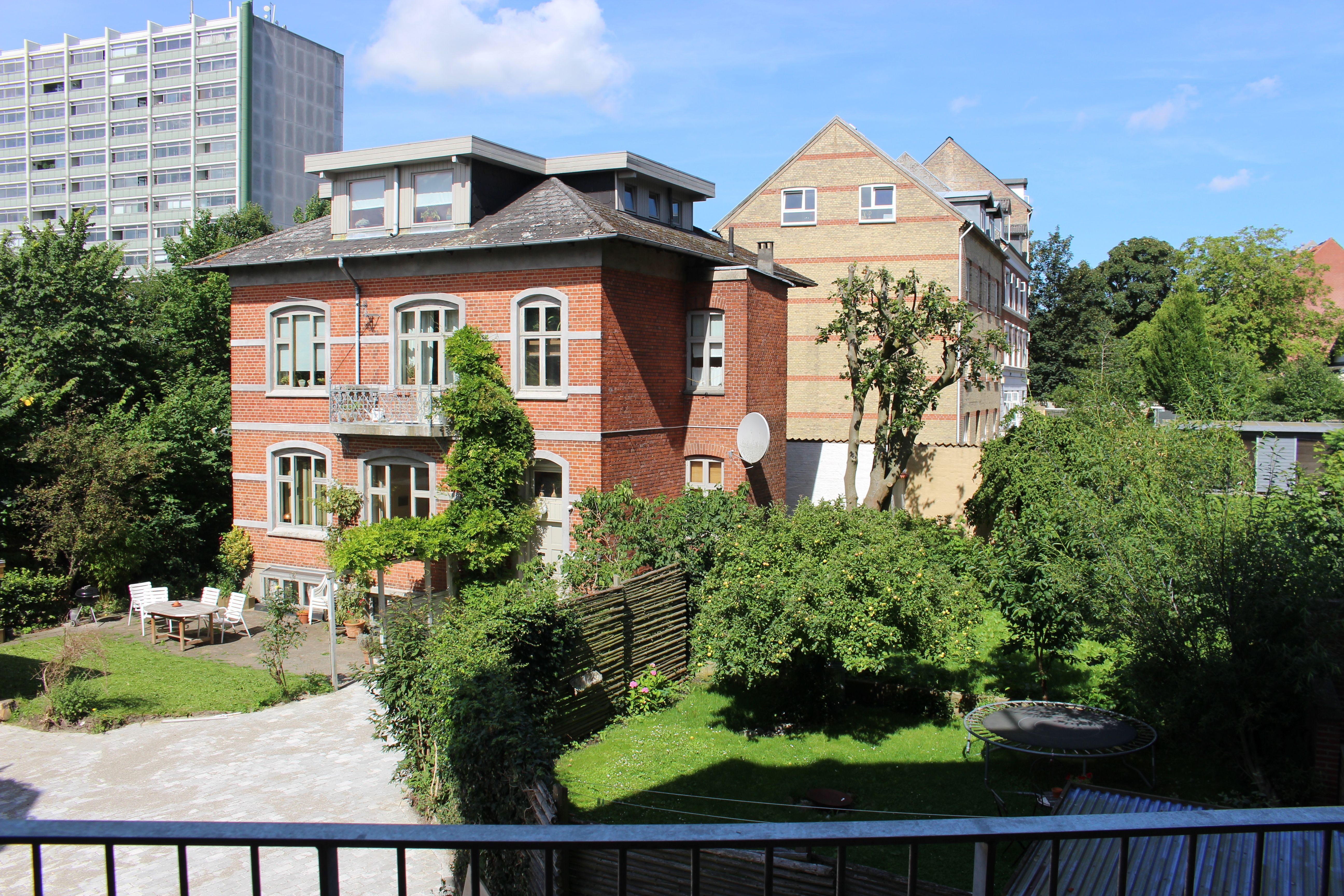 Lejligheden har en god og central beliggenhed i Aarhus, tæt på den Gamle by, BSS og Botanisk Have. Der er gode indkøbsmuligheder, og lejligheden ligger i kort afstand til offentlig transport og i gåafstand til midtbyen.