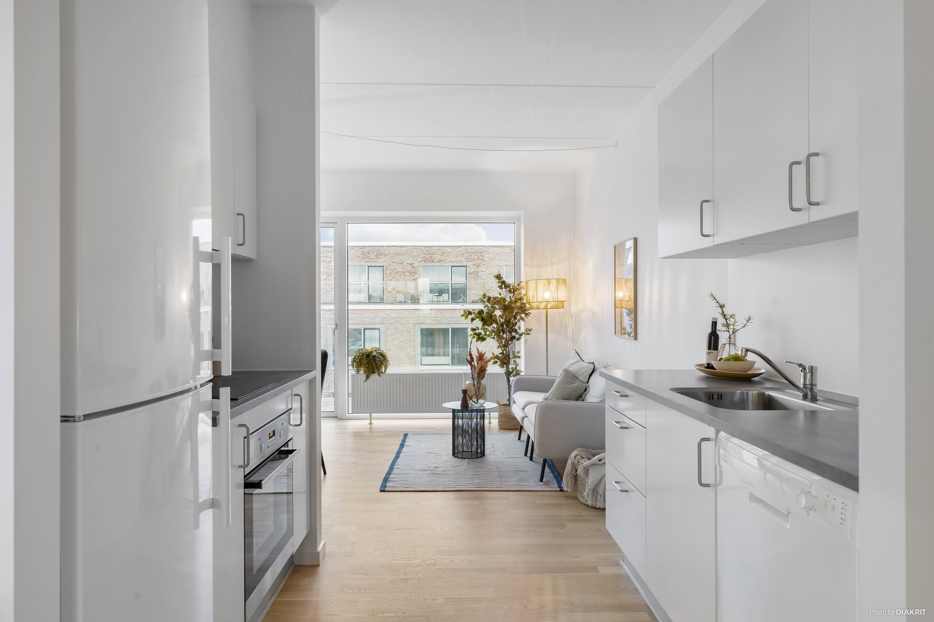Der er direkte udgang til egen terrasse med aftensol og naturligvis gratis parkering.