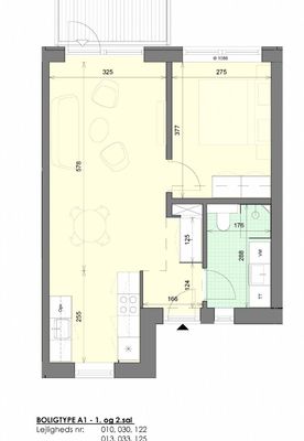 Du får det hele - et rigtigt køkken med plads, et godt værelse med garderobeskabe, og super badeværelse med fin bruseniche.