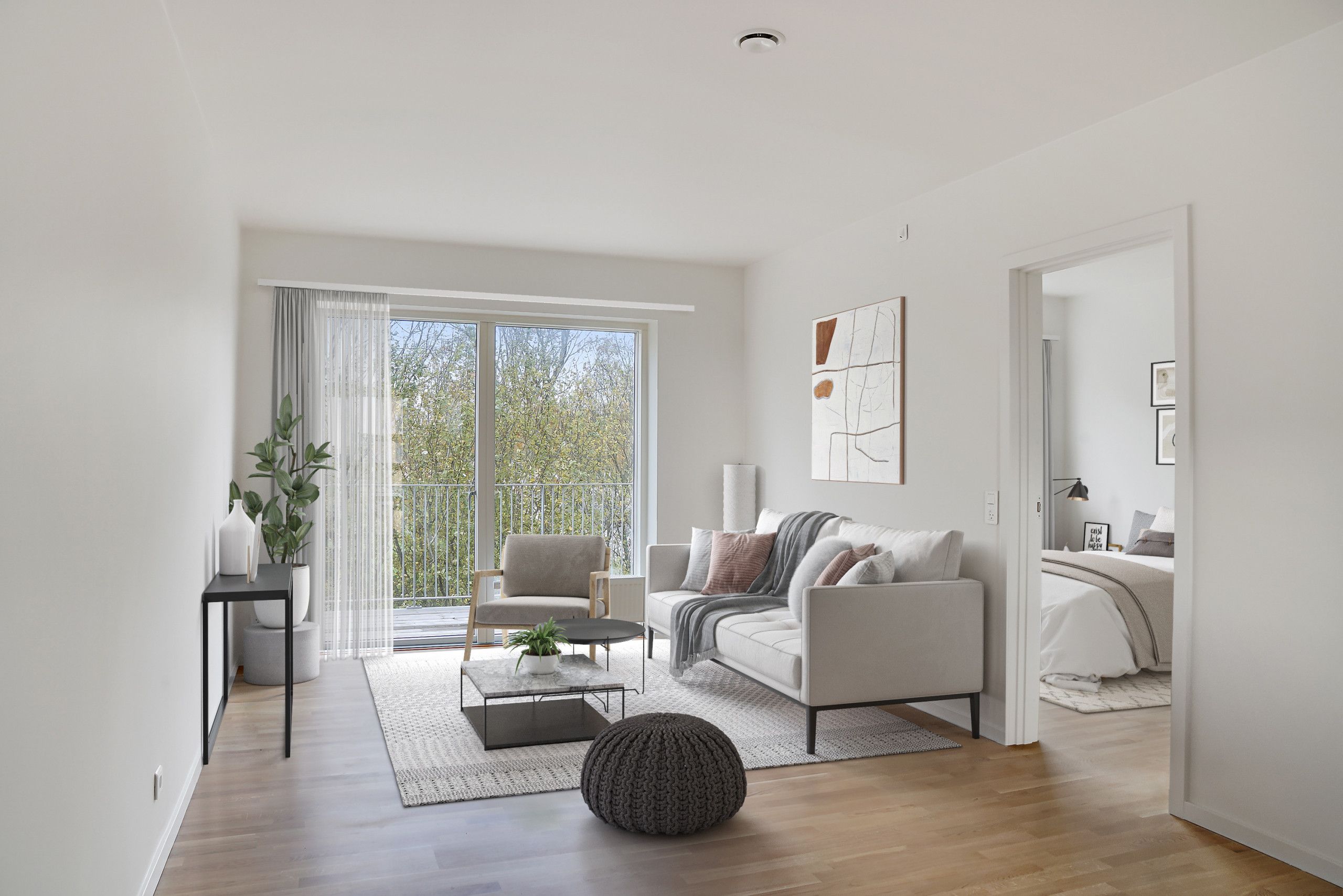 Der er direkte udgang til egen terrasse med aftensol og naturligvis gratis parkering.