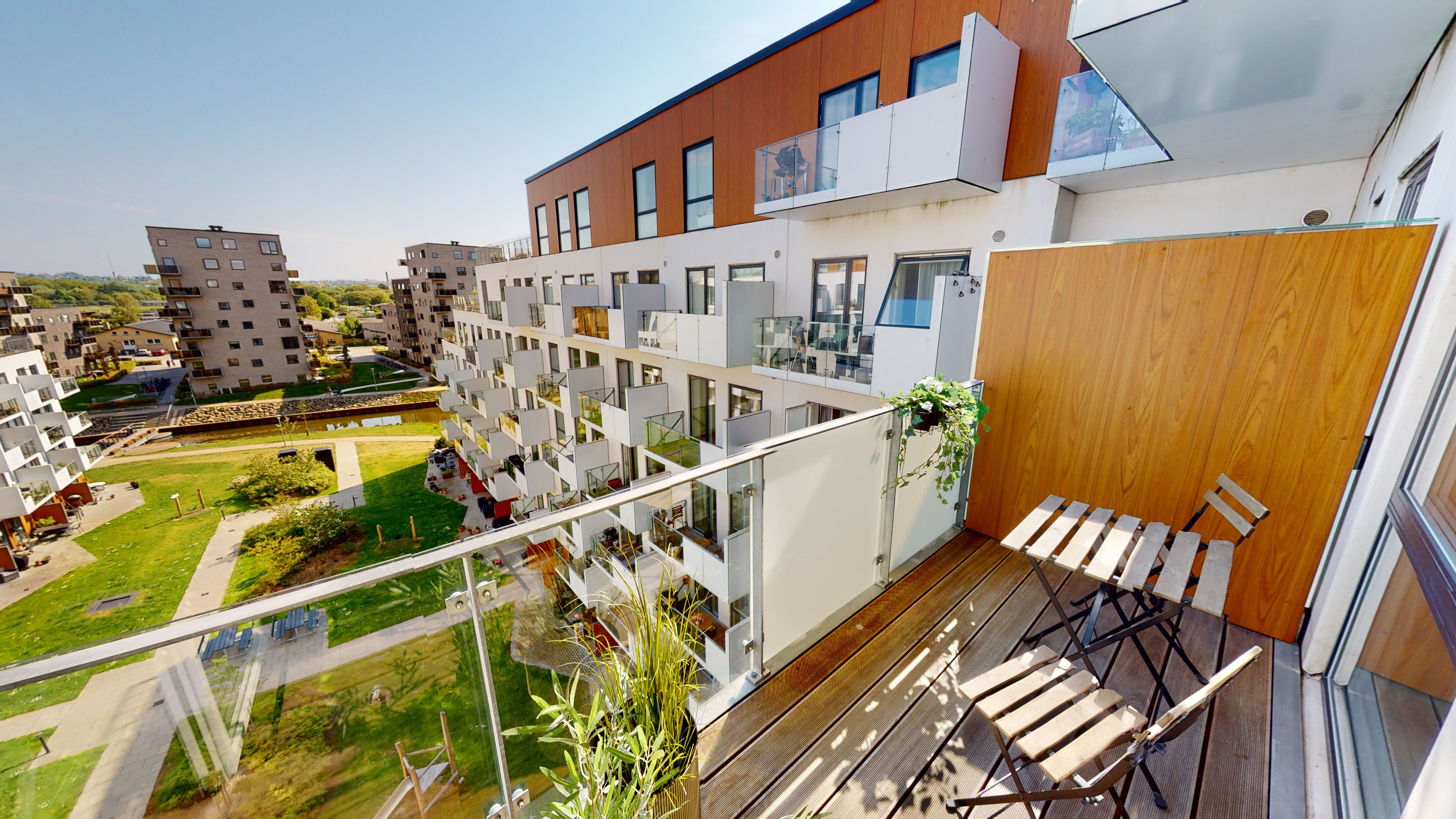Vinduerne, der vender mod togbanen, er lydisolerede og der er opsat en lyd væg som afskærmning, så du kan nyde en rolig og behagelig boligoplevelse.