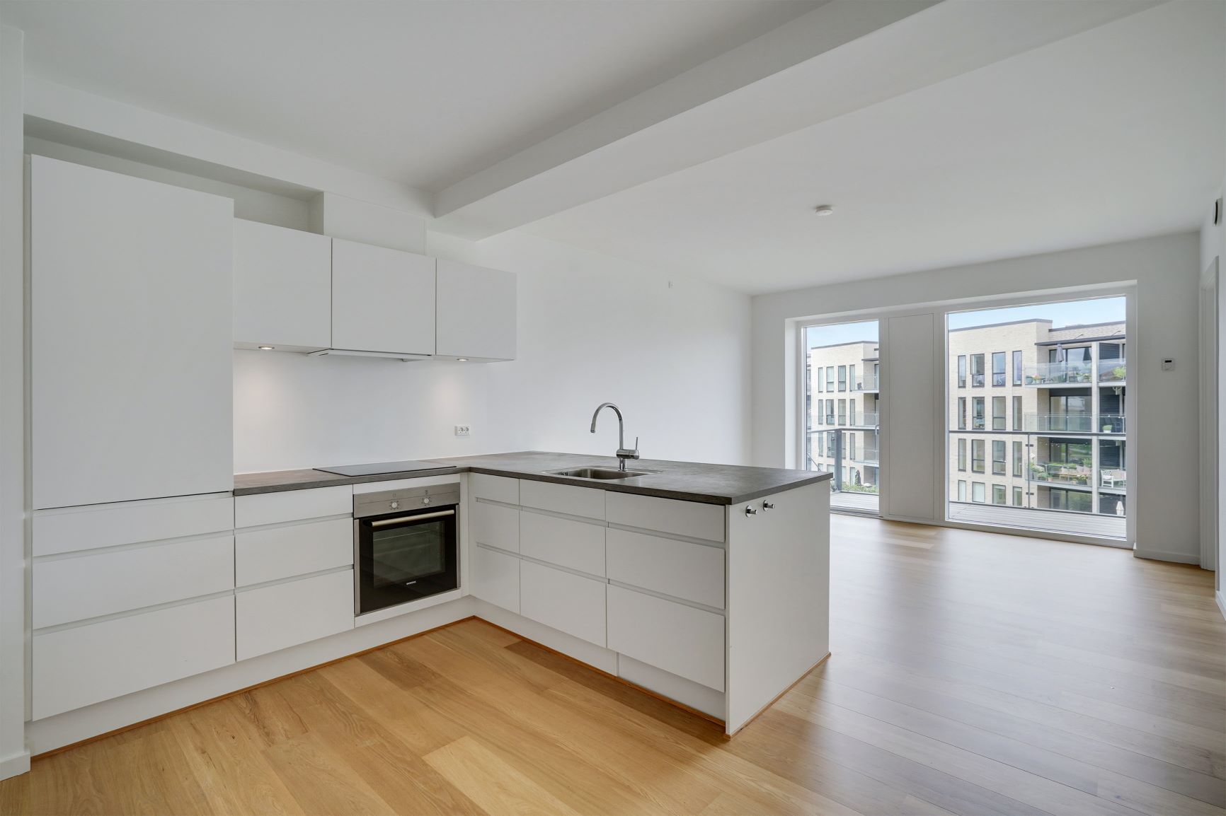 Skøn lys 2-værelses lejlighed i nyopført byggeri fra 2024. Træd ind i dit nye hjem i et moderne byggeri i stueplan med egen privat terrasse. Lejlighederne er opført med fokus på kvalitet og funktionalitet. De byder på en rummelig entré med god plads til overtøj og sko, samt en stor, åben stue og køkken-alrum, der er udstyret med alt i hårde hvidevarer, inklusive en integreret opvaskemaskine og køl/frys. De smukke, hvide HTH-skabselementer og de flotte laminatgulve fuldender det stilrene design. Gulvvarme findes i alle rum – perfekt til en behagelig temperatur hele året. De store terrasseskydedøre åbner op til den private terrasse, hvor du kan nyde solrige dage og hyggelige aftener. De sikrer samtidig et fantastisk lysindfald i hele boligen. Badeværelset er indrettet med store, grå klinker og et lækkert, lyst badmiljø fra HTH. Her finder du også en praktisk kombineret vaskemaskine/tørretumbler, der gør hverdagen lettere. Lejlighedens soveværelse er udstyret med indbyggede, hvide skabe og god plads til indretning af både soveplads og kontor eller studieplads. Laminatgulvene giver et elegant og funktionelt look. Vær opmærksom på, at billederne er vejledende – indretning og vinduernes placering kan variere. Vinduerne, der vender mod togbanen, er lydisolerede og der er opsat en lyd væg som afskærmning, så du kan nyde en rolig og behagelig boligoplevelse. Lejlighederne er en del af et dejligt fællesskab med grønne udeområder, hvor du kan slappe af og nyde naturen. Der hører et uisoleret skur til hver lejlighed. Parkering er gratis på de parkeringspladser, der er i området. Der er også mulighed for at lade din elbil ved de opstillede lade standere i området. Huslejen er ekskl. forbrug, og du afregner direkte med forsyningsværkerne for el, vand og varme. Husdyr/kæledyr er desværre ikke tilladt. Poppelhusene ligger på en rolig, lukket vej blot 8-10 km sydvest for Aarhus C. Du har alt, hvad du behøver, lige i nærheden – 250 meter til den nye Rema1000, 500 meter til Netto, samt daginstitution, skole og offentlig transport. Der er også nem adgang til E45. Hasselager byder på smuk natur, og i øjeblikket er der gang i udbygningen af Hasselager Vildskov, som giver flere fantastiske muligheder for gåture. Du finder også flere dejlige hikingruter og smukke skovsøer i området. Kontakt os i dag for mere information og for at booke en fremvisning af denne fantastiske lejlighed!
